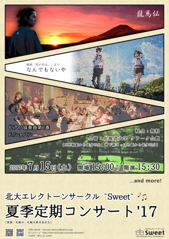 北海道最大のエレクトーンサークル『北大エレクトーンサークル ~Sweet~』は、第19回目の定期コンサートを開催いたします。クラシック、ジャズはもちろん、定番ポップスから暑い夏にぴったりな清涼感あふれる有名CMソングまで、総勢42名でお送りします。お気に入りの一曲を探しに足を運んでみませんか?皆様のご来場、心よりお待ちしております!