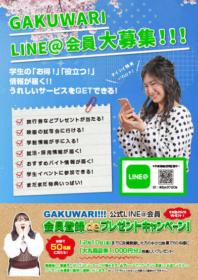 GAKUWARI LINE@会員大募集!!!